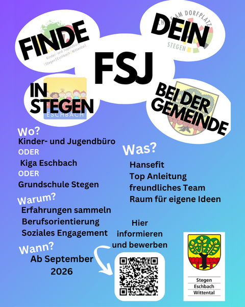 •	Und unser Kinder- und Jugendreferent Andreas Hummel unter jugendreferat@stegen.de oder per Telefon unter 07661 3969-58